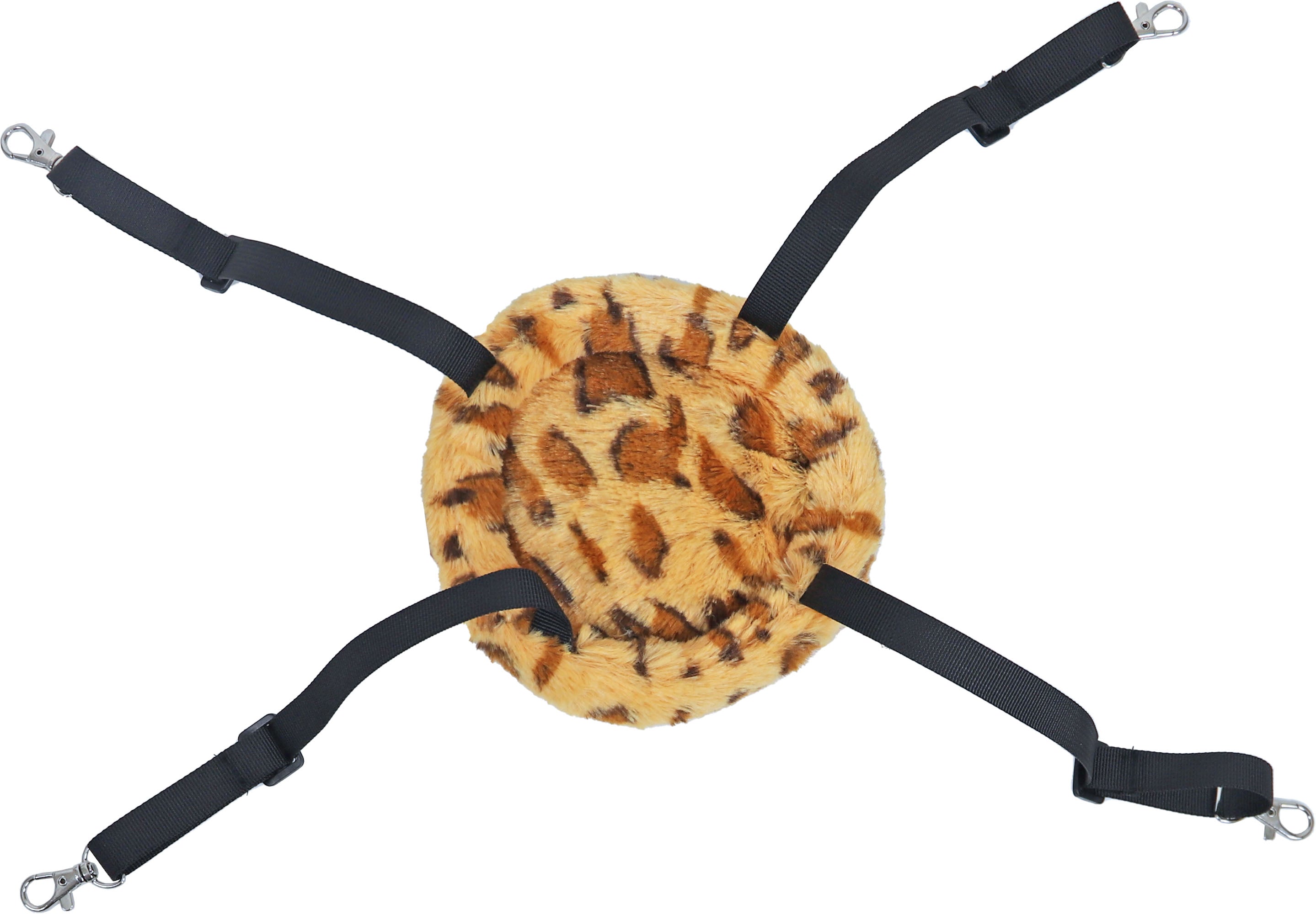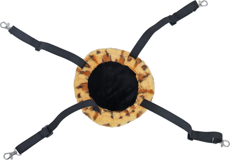Der Boon Hängemattenkorb im Leopardenmuster ist ein warmer, komfortabler Ruheplatz für dein Nagetier. Dank der vier verstellbaren Nylonbänder mit robusten Metallkarabinern lässt sich der Korb leicht an jedem Käfig befestigen. Das wendbare Kissen bietet Abwechslung: eine coole Leopardenmusterseite und eine weiche schwarze Plüschseite.
