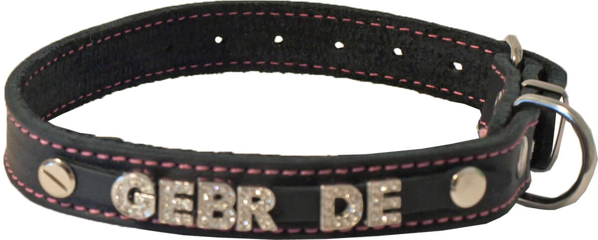 Boon Naamhalsband Soft Gestikt Schwarz/Rosa vereint Luxus, Komfort und Personalisierung. Hergestellt aus weichem, langlebigem Leder und mit farbigen Nähten für ein auffälliges Aussehen versehen. Dank des robusten Schnallverschlusses und der verstellbaren Passform ist dieses Halsband perfekt für den täglichen Gebrauch und kann ganz nach Wunsch mit einzelnen Buchstaben personalisiert werden.