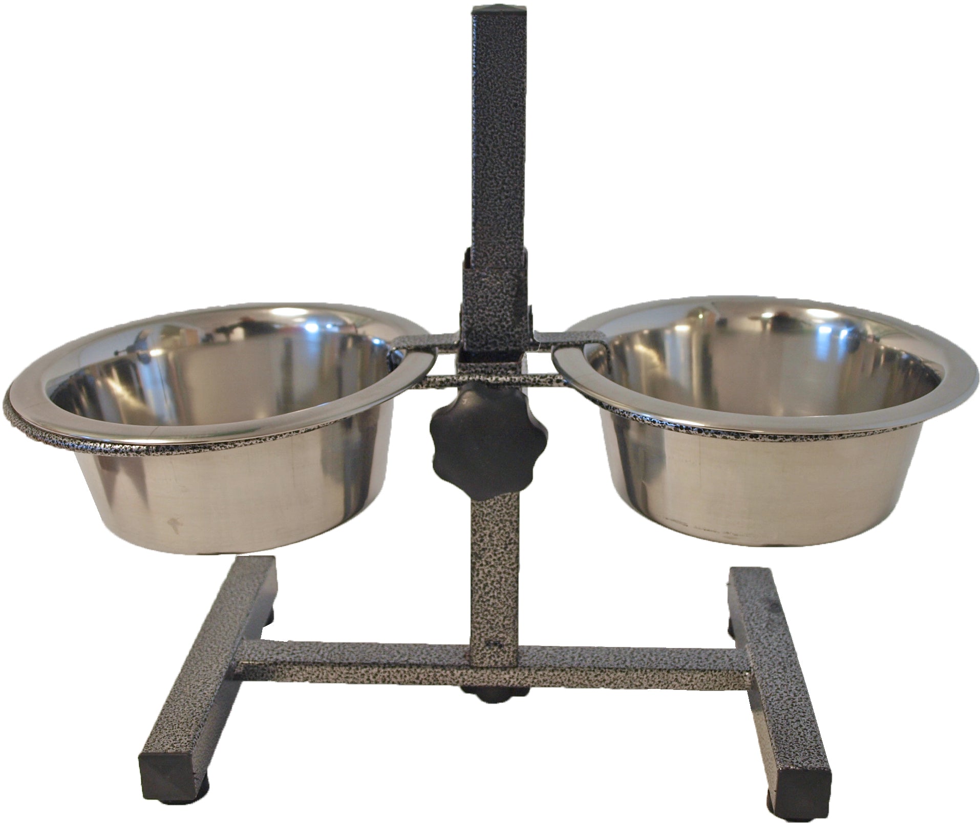 Dieser verstellbare Futterständer mit Hamerschlag-Finish sorgt für eine komfortable und natürliche Essposition für deinen Hund. Die doppelten Edelstahlnäpfe sind auf die richtige Höhe einstellbar, was Schlingen reduziert und die Verdauung fördert.