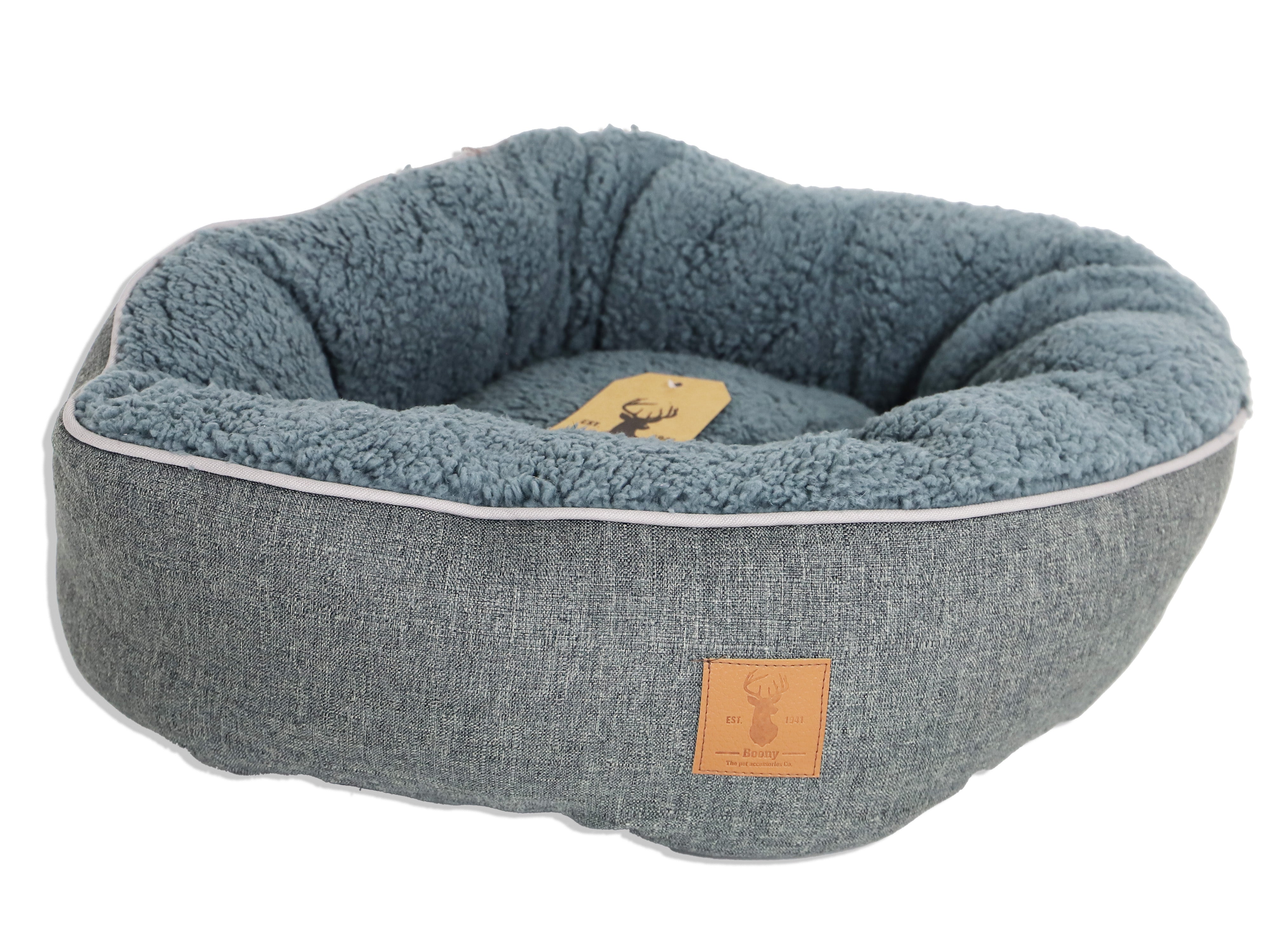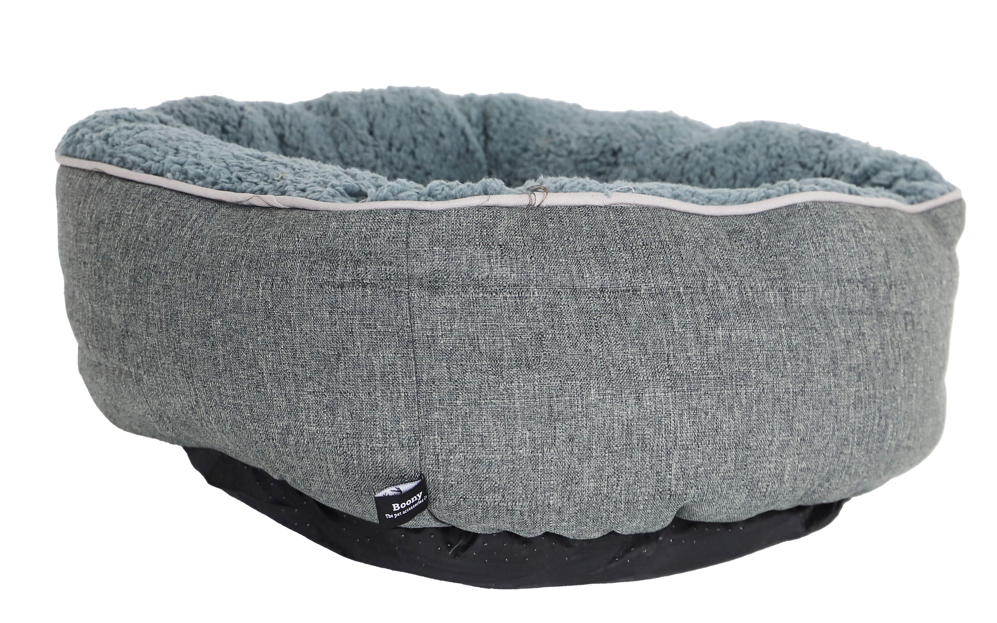 Dieser runde Korb ist perfekt für Haustiere, die sich gerne zusammenrollen. Der Boony Floof ist nicht nur ein Schlafplatz, sondern eine Oase der Ruhe mit einer weichen Schafwollstruktur, die sich wie eine warme Umarmung anfühlt. Die erhöhten Ränder bieten zusätzlichen Halt und Sicherheit beim Schlafen oder Ausruhen.