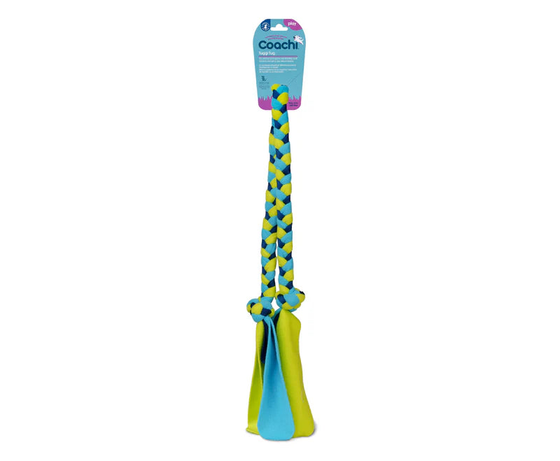Der Coachi Tuggi Tug - Tuggi Spin ist das perfekte Spielzeug für ein spannendes Tauziehen mit deinem Hund. Dieses weiche, dehnbare Spielzeug wurde entwickelt, um das Spielen sowohl für dich als auch für deinen Hund komfortabel zu machen. Die extra starken Bänder sind ideal für wildes Spiel und fördern interaktiven Spaß.