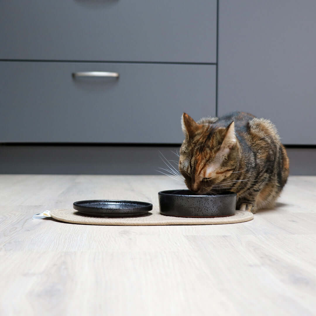 D&D Home Jasper Kat Futter- und Trinkschale 200ml 13,5x13,5x3,5cm Schwarze Punkte