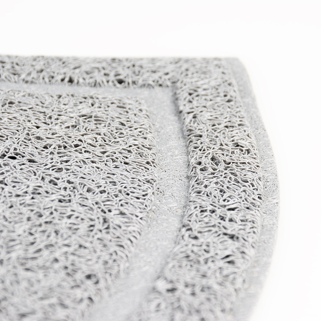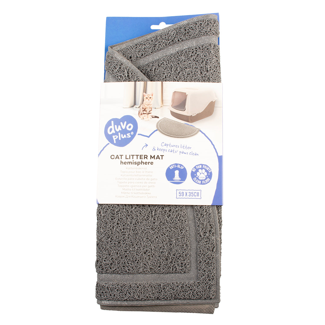 Die Duvoplus Katzenklo-Matte Halbrund ist eine clevere und hygienische Lösung gegen verstreutes Katzenstreu. Die speziellen Fasern auf der weichen Oberfläche reinigen die Pfoten deiner Katze, sobald sie das Katzenklo verlässt. Dank der rutschfesten Unterseite bleibt die Matte gut an ihrem Platz liegen. Einfach zu reinigen durch Ausschütteln oder Abspülen mit kaltem Wasser. Erhältlich in Grau und Petrol.