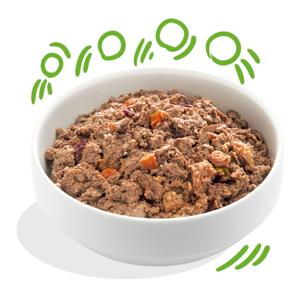 Getreidefreies und glutenfreies Nassfutter mit frischem Lamm, Rind, Karotte und Rote Bete. Für erwachsene Hunde. Eine fantastische Mischung aus leicht verdaulichen Proteinen, supergesundem Obst und geschmackvollen Kräutern.