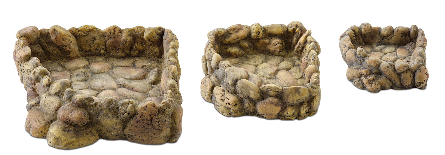 Der Exo Terra Wasserbehälter hat eine sehr realistische Kieselstein-Felsen-Oberfläche, die zum natürlichen Aussehen deiner Terrarienlandschaft beiträgt. Die neutrale, natürliche Farbe der Kieselsteine ermöglicht eine einfache Integration in ein Wüsten- oder Tropenterrarium. Das platzsparende Design sorgt dafür, dass der Wasserbehälter ordentlich in die Ecke deines Terrariums passt. Kleinere Reptilien, Amphibien und Insekten können durch die "Sicherheitsstufen" im Behälter leicht aus dem Wasserbehälter entkommen, um Ertrinken zu verhindern.