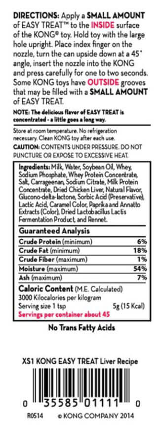 Der KONG Liver Easy Treat ist eine schmackhafte Leberpaste, die speziell für die Verwendung mit KONG Gummispielzeugen entwickelt wurde. Diese leicht verdauliche und transfettfreie Leckerei macht die Spielzeit noch unterhaltsamer. Kein Kühlschrank erforderlich und perfekt zum Einfrieren für extra langes Vergnügen!