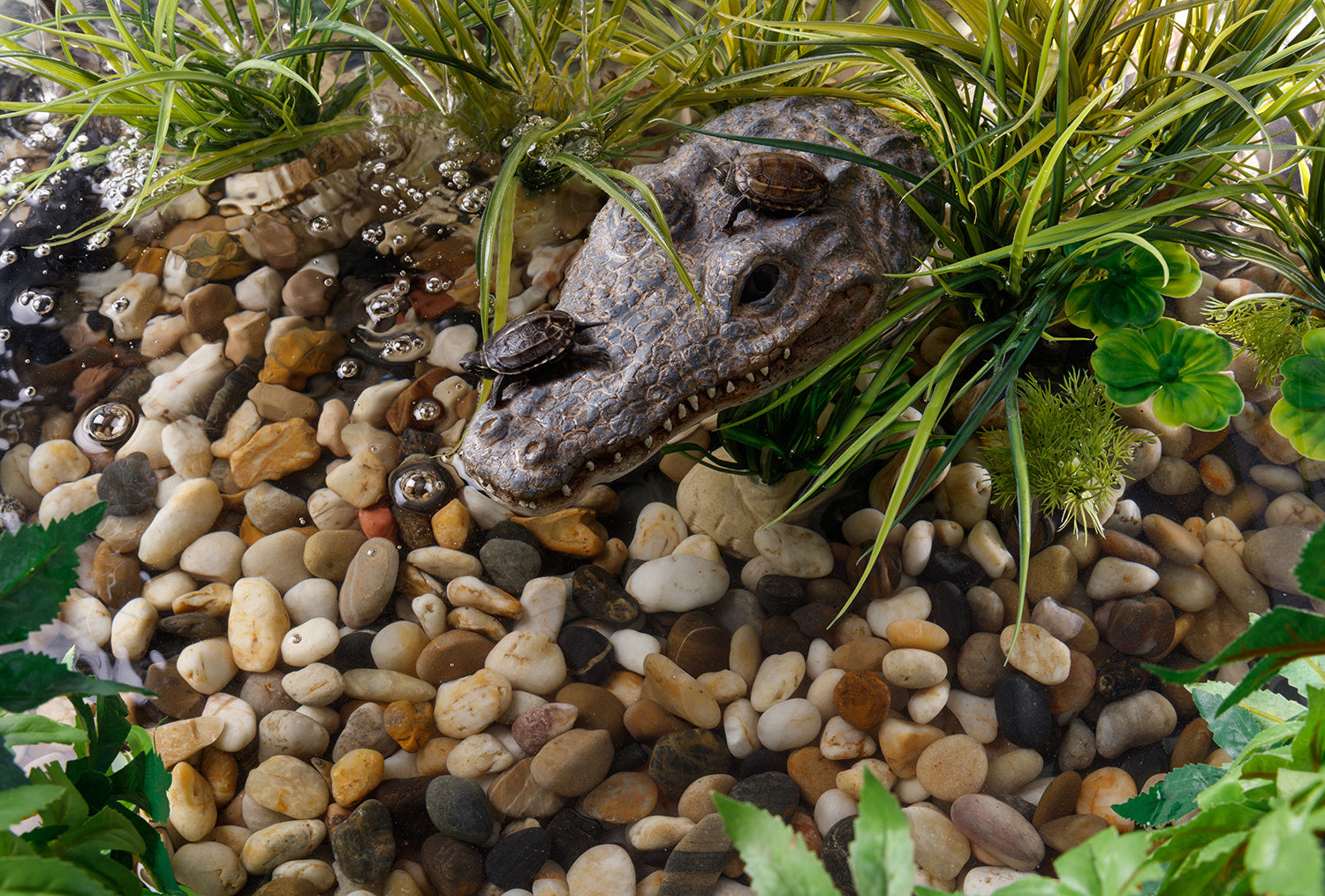 Dieses hübsche schwimmende Ornament ist eine Nachbildung seines natürlichen Gegenstücks, des Krokodils. Bietet einen leicht zugänglichen Sonnenplatz für deine semi-aquatischen Reptilien und Amphibien (wie Schildkröten, Salamander und Molche). Geeignet zum Ausruhen, zur Regulierung der Körpertemperatur oder zur Erhöhung der UV-Strahlenexposition. Textur für besseren Halt und Saugnapf für sichere Befestigung.