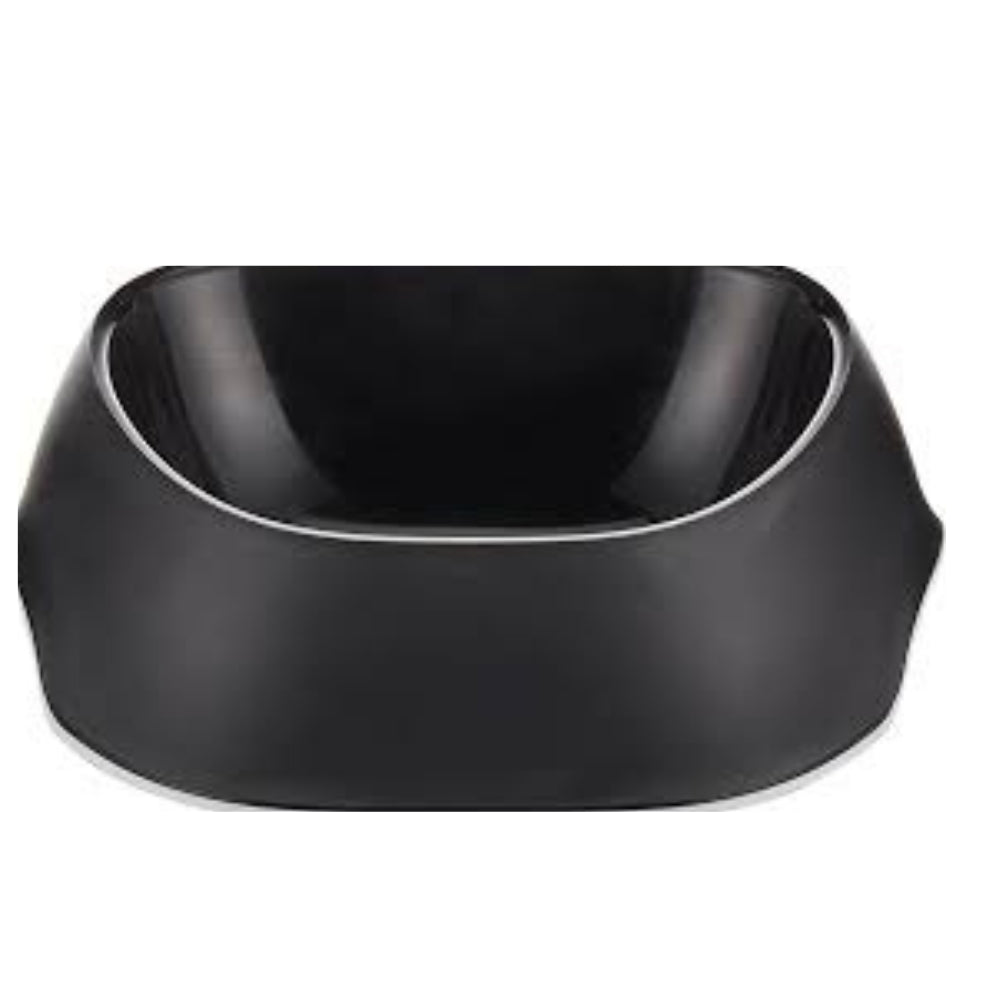 Der Moderna Futternapf Kunststoff Sensi Bowl Schwarz 2200ml vereint Stil, Funktionalität und Komfort für dein Haustier. Dank der speziellen Form wird der Hals deines Haustiers beim Essen oder Trinken geschont. Der Anti-Rutsch-Rand verhindert Verrutschen und Verschütten. Mit einer matten Außenseite und glänzenden Innenseite sieht der Futternapf schlank und modern aus. Außerdem ist er spülmaschinenfest, BPA-frei und dank der Griffe an den Seiten leicht zu greifen.