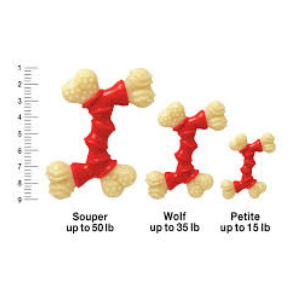 Schenke deinem Hund stundenlang sicheres und schmackhaftes Kauvergnügen mit dem Nylabone Double Bend mit Bacon!