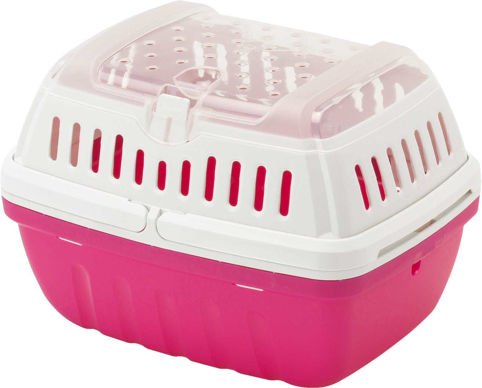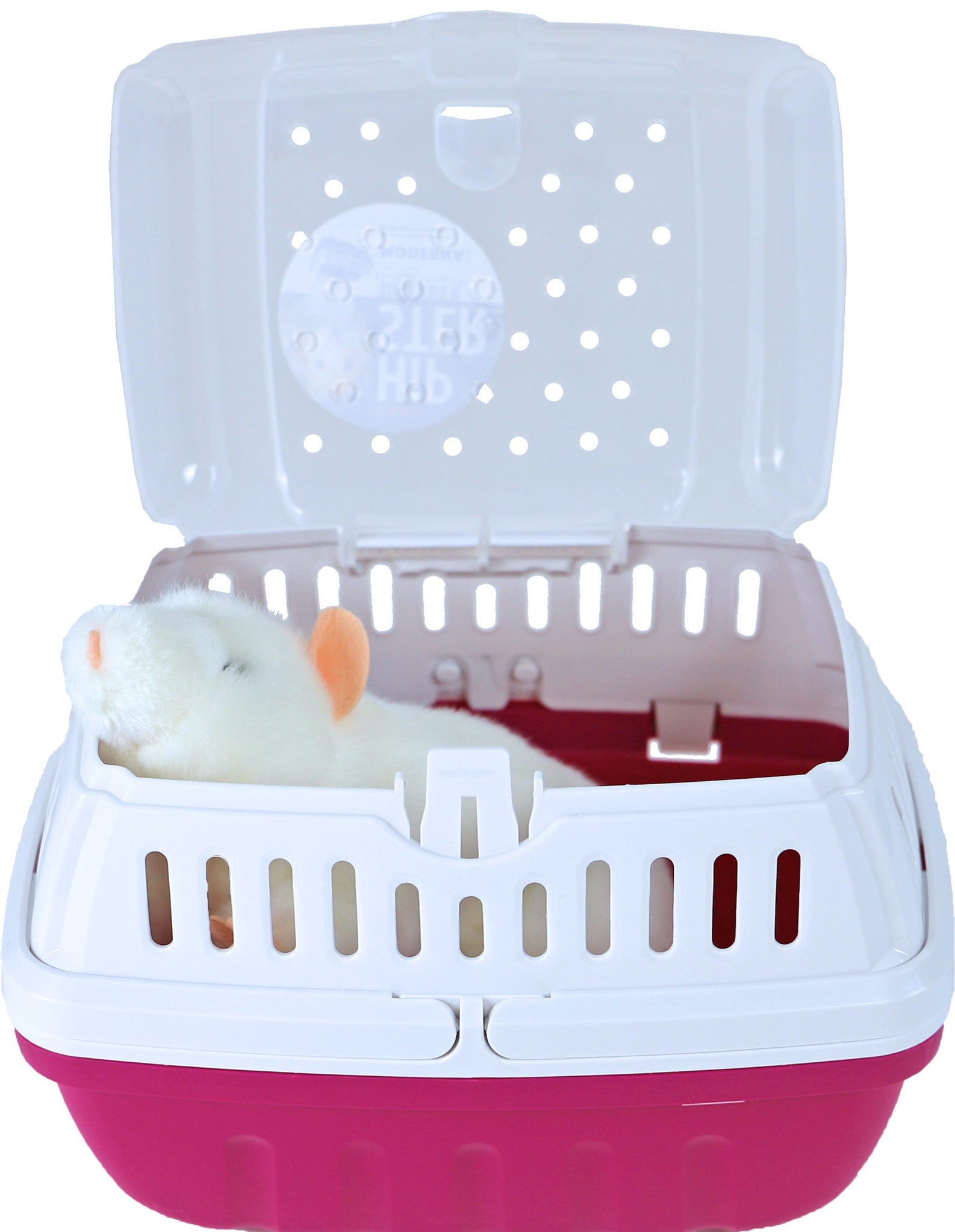 De Moderna Reismand Hipster Plastic Klein Blauwe Bes - Fel Roze ist speziell für den sicheren und einfachen Transport von kleinen Tieren wie Hamstern und Mäusen entwickelt worden. Ideal zum Abholen deines neuen Haustiers, für einen Tierarztbesuch oder den Transport während eines Urlaubs.