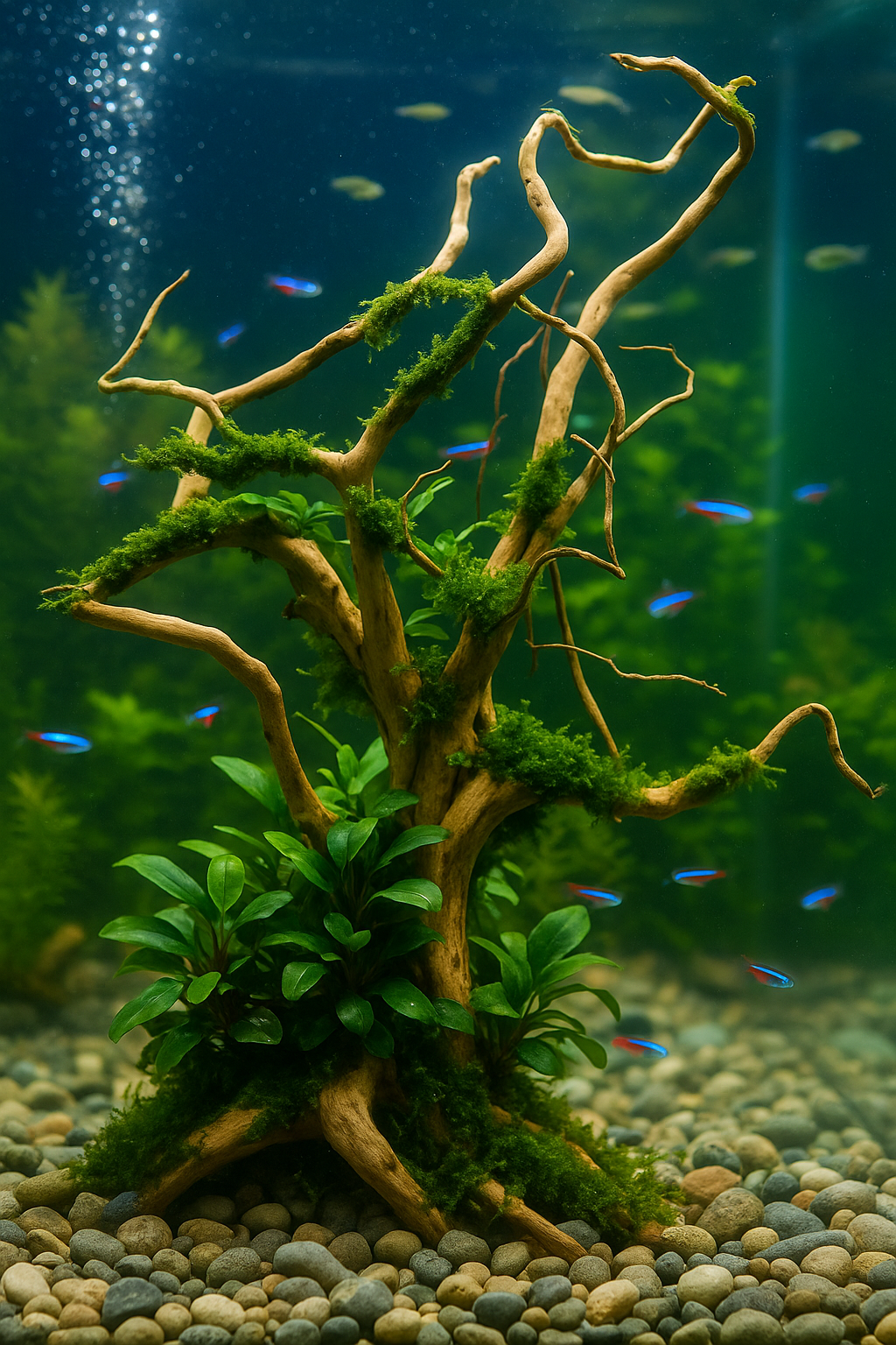 Spiderwood ist ein sehr dekoratives Holz mit feinen Verzweigungen. Das Holz ist ideal für Aquascaping. Die Verzweigungen sind wunderschön und können mit Moos bewachsen werden. Das Holz ist ein einzigartiges Naturprodukt, das auf natürliche Weise hergestellt wird.