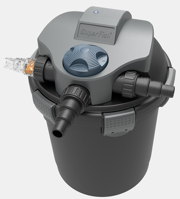 Druckfilter, daher ist die Installation sogar unter dem Wasserspiegel möglich.