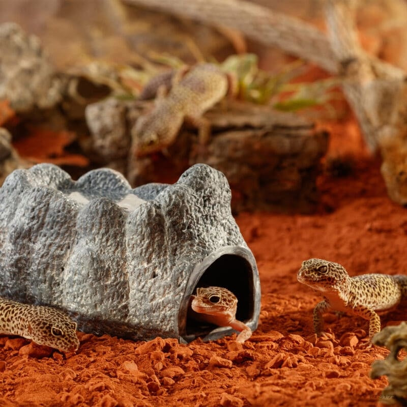 Dekohöhle mit einem Wasserreservoir, das den Unterschlupf kühl und feucht hält. Geeignet für Terrarientiere.
