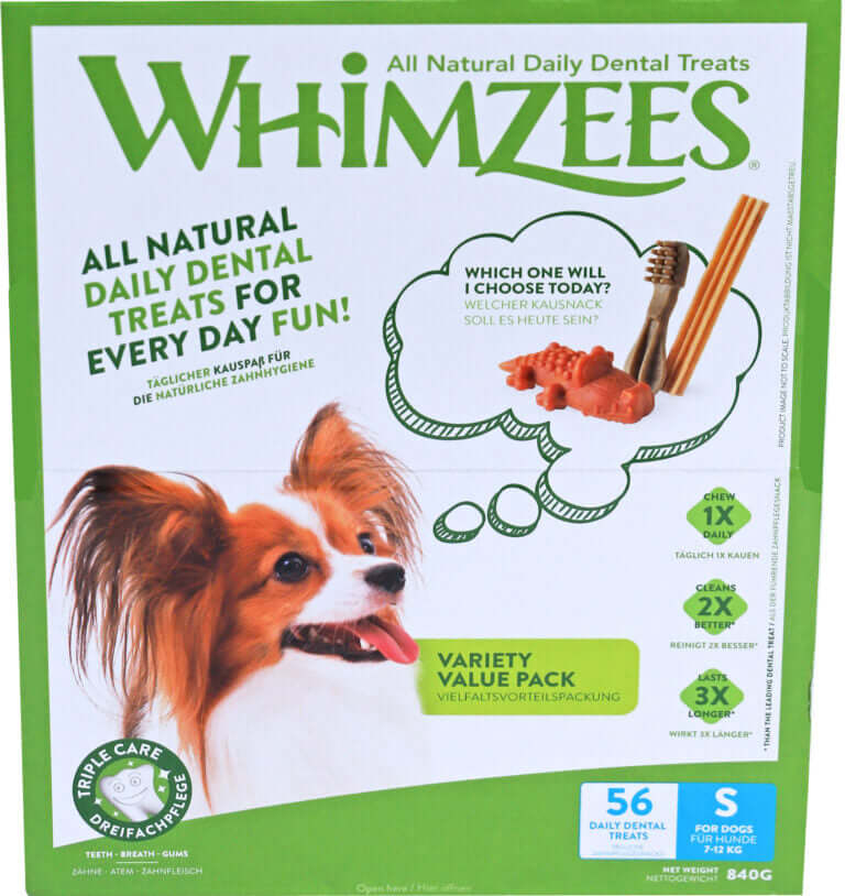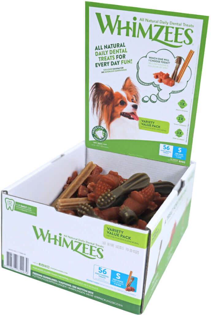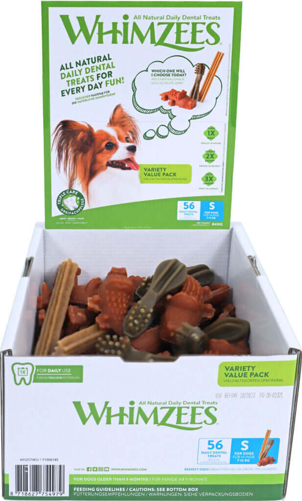 Whimzees Variety Valuebox Klein 56 Stück Gesunde Zahnpflege mit Whimzees Variety Valuebox Small 56 Stück! Whimzees macht das Zähneputzen spaßig...